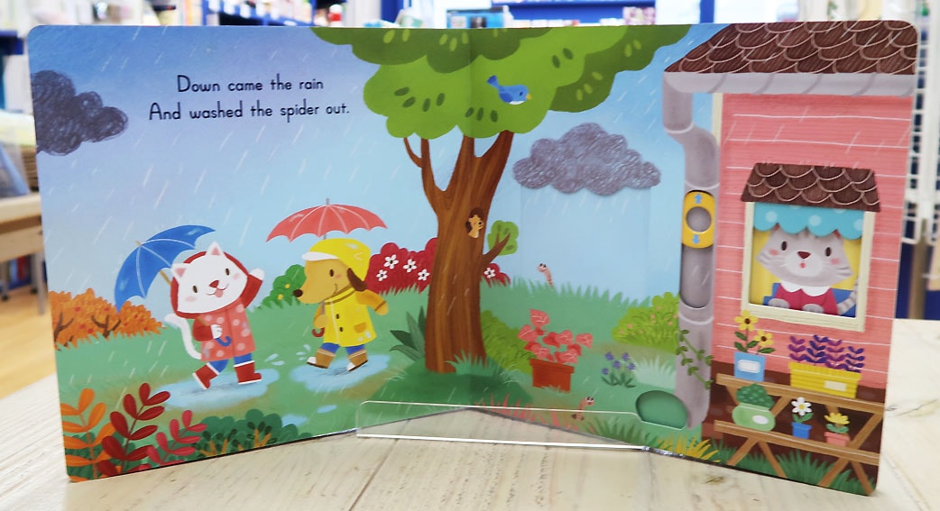 『Incy Wincy Spider』が流れる、新しいタイプの音つきしかけ絵本です。