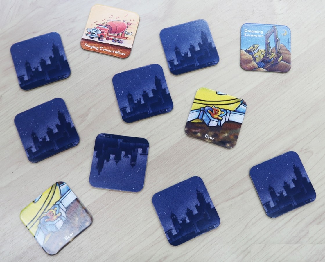NYタイムズベストセラーに輝く大人気絵本『Goodnight, Goodnight Construction Site』(日本語翻訳版:『おやすみはたらくくるまたち』)が楽しいメモリーゲーム(マッチングゲーム)になりました!