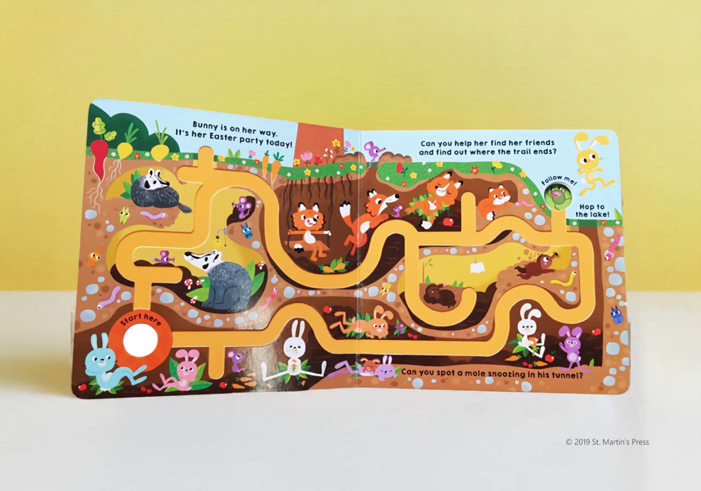 ページに入れられた溝を指でたどり、ウサギさんについていこう!