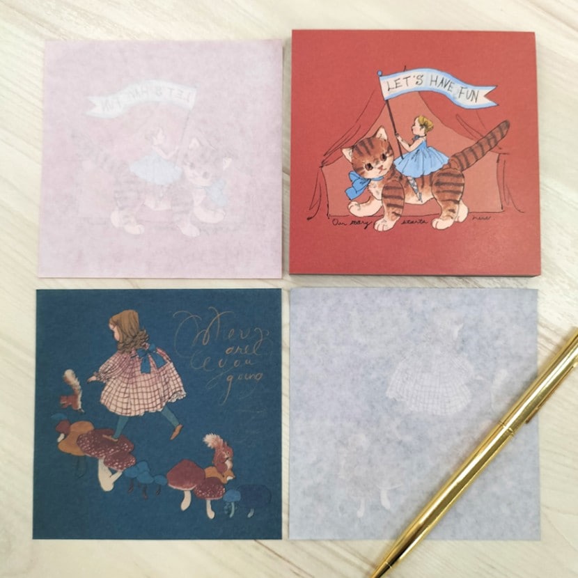 2種類の絵柄が楽しめる、スクエアタイプのメモパッド。