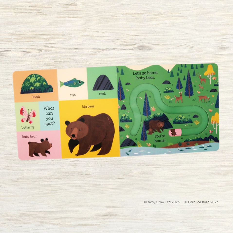 ページに入れられた溝に沿って赤ちゃん動物たちを動かし、おうちに帰るお手伝いをしよう!