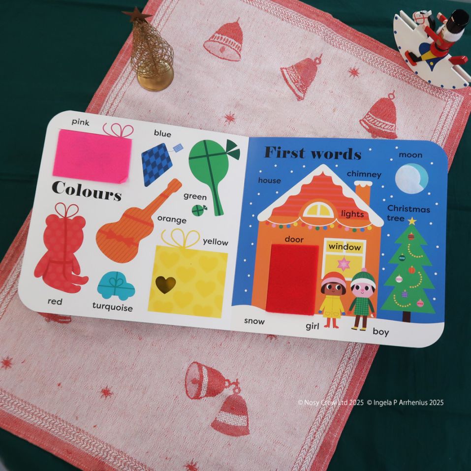 フェルトでできたフラップをめくり、クリスマスを楽しみながら簡単な単語や数字、かたち・色を学ぼう!