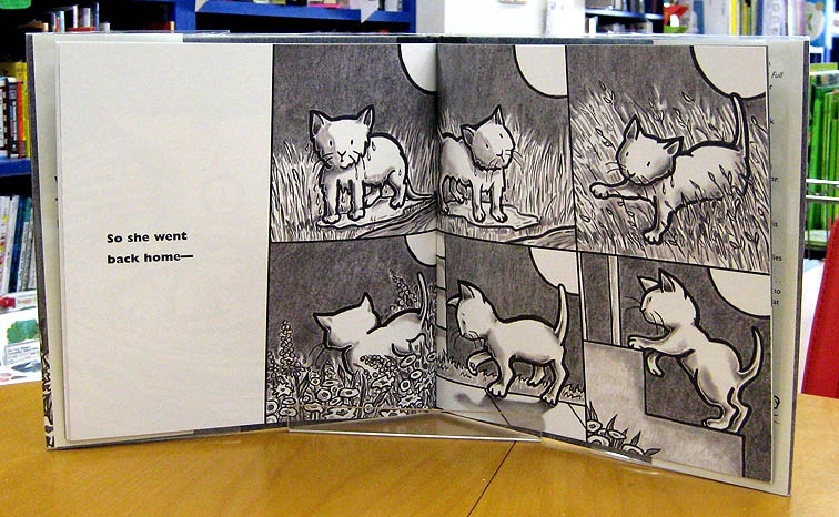 ある日こねこは、池に大きくておいしそうなミルクが浮かんでいるのをみつけます。飛んだり跳ねたり、なんとかして飲もうとしますが...。