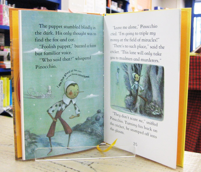 工房で操り人形を制作していたゼベットじいさんは、突然人形が話しだし、動きだしたのを見て、腰を抜かします。その人形をピノキオと名付けて、息子のように可愛がっていましたが、ピノキオは破天荒な行動をくり返し、おじいさんのもとから姿を消してしまいます。自由気ままな旅の道中で、甘い誘惑につられては、恐ろしい目にあったりと、ピノキオは失敗と成長を重ねていきます。